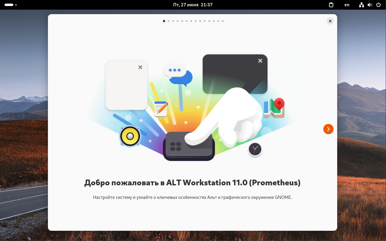 При первом запуске ОС «Альт Рабочая станция» 11 система предлагает настроить её под свои задачи.